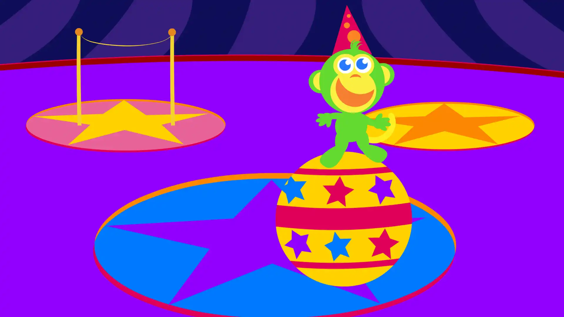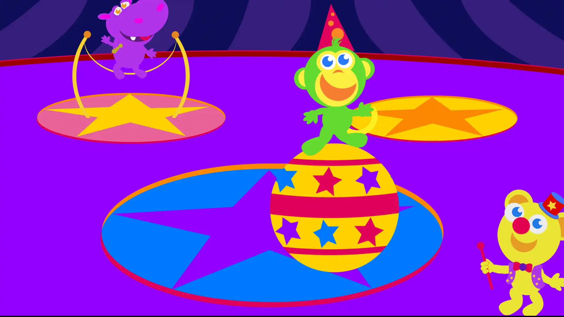 The Big Top is a playful cause and effect circus game for toddlers and preschoolers where tapping the screen brings silly circus performances to life.